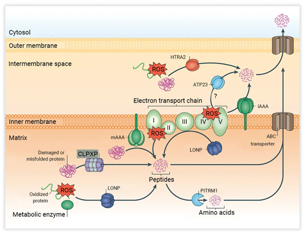Statistics show that about two-thirds of the 1,200 mitochondrial proteins are located in the matrix, where the major matrix AAA proteases (such as LONP and CLPP) play an important role in the protein folding homeostasis control mechanism of mitochondria. Mutations in these proteases are associated with human genetic diseases. For example, mutations in the human LONP1 gene can lead to CODAS syndrome. Mutations in the human CLPP gene can cause Perrault syndrome, among others. In summary, mitochondrial proteolysis is considered crucial for maintaining mitochondrial function.