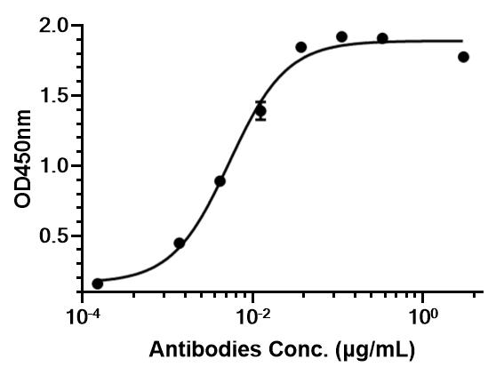 • Immobilized human-DDR1-His can bind Anti-DDR1/CD167a Antibody. The EC50 for this effect is 5.318 ng/mL.