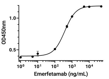 • Immobilized Siglec-3/CD33 Protein, Human (HEK293, Fc-Myc, HY-P72021) can bind Emerfetamab. The EC50 for this effect is 379.1 ng/mL.