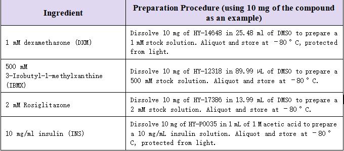2、Preparation of Adipogenic Induction Medium