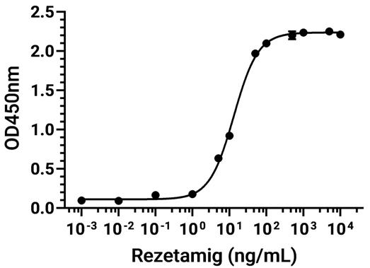 • Immobilized Siglec-2/CD22 Protein, Human (HEK293, His, HY-P72019) can bind Rezetamig. The EC50 for this effect is 16.16 ng/mL.